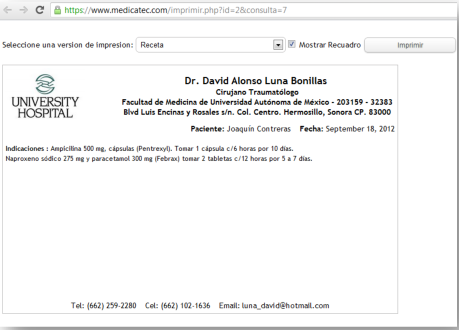 Almacene su base de datos de Medicamentos para generar recetas rapidamente.